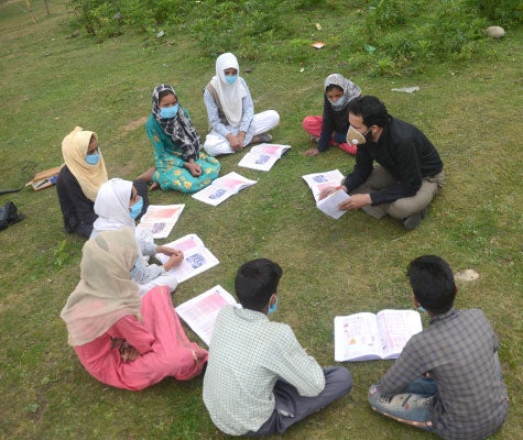 Students participate in an outdoor class in India. (Majority World/Getty Images)