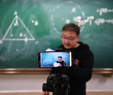 A teacher records himself explaining a math problem to his students in Jilin, China. (TPG/Getty Images)