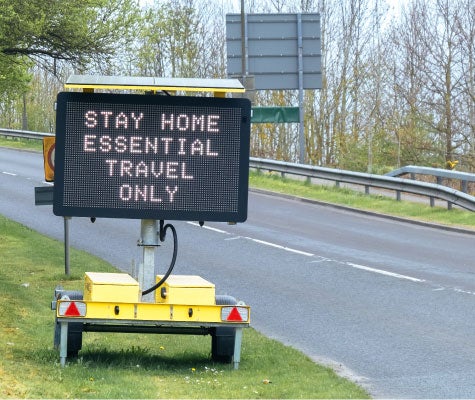 A sign urges drivers to stay home during the early days of the pandemic. (Asurobson/Getty Images)