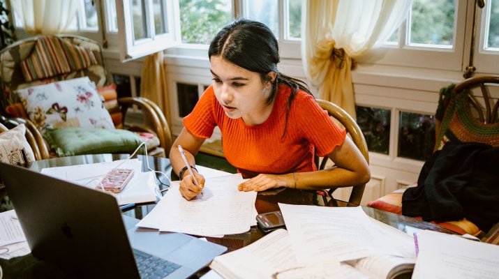A college student does homework on her laptop. (Carol Yepes/Getty Images)